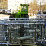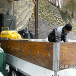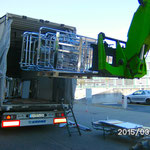 Draussen steht unser bewährtes Team vor und auf dem LKW bereit, bestehend aus dem Präsidenten Andreas Thöni mit dem Fahrer Georgi, unserem Vereinsmitglied Christian Schüpbach sowie hoch konzentriert wie immer unser Mitglied und Merlo-Fahrer Hans Haldemann