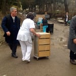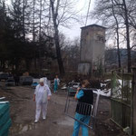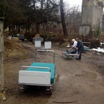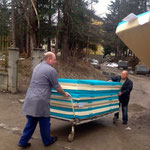 Bei regnerischen Bedingungen wurde der LKW entladen. Wir hoffen, dass wir Troyan für das lange Warten etwas entschädigen konnten.