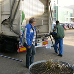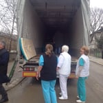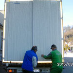 Nach fast einer Woche Unsicherheit, ob wir auch wirklich auf das bestellte Datum einen LKW bekommen werden, bog tatsächlich um 8.06 Uhr morgens Georgi mit seinem Camion beim Kantonsspital Olten um die Ecke. Die Erleichterung war gross. Unser Präsident Andreas Thöni öffnete mit dem Fahrer zusammen umgehend die Türen, damit wir mit laden beginnen konnten.