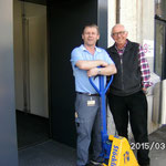 Auch Urs Jeger vom technischen Dienst des Kantonsspital Olten mit seinem Mitarbeiter freuten sich über die pünktliche Ankunft. Genauestens wurden die Nummern der geladenen Spitalbetten für die Buchhaltung notiert.