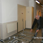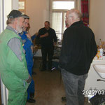 Unsere Vereinsmitglieder Werner Thöni und Beat Blaser bereiten drinnen in Windeseile erst die Spitalbetten vor