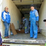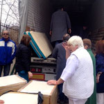 Noch eine letzte Ladung Matratzen, kontrolliert von Silvia Wälti und Ruedi Minnig, eine letzte Sicherung der Ladung, eine letzter Augenschein der geleisteten Arbeit des Fahrers und unserer Mitglieder, Vorhang zu - Türe zu und FERTIG. Es ist 12.15 Uhr - REKORD