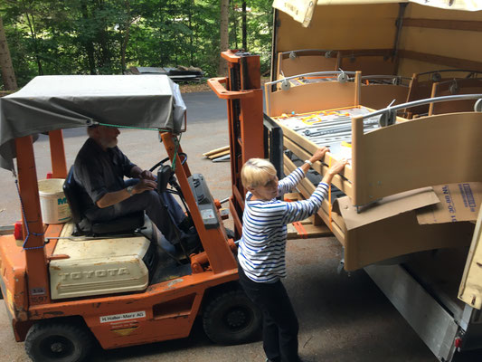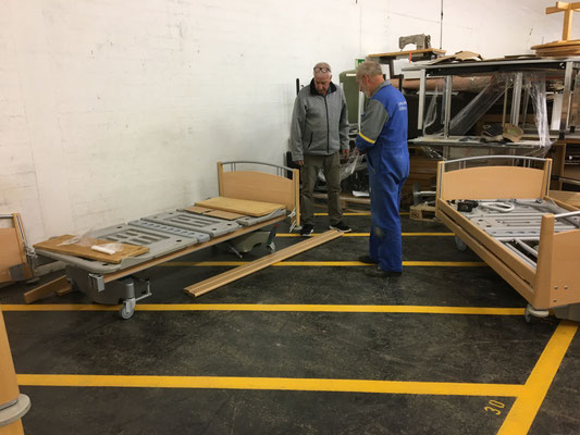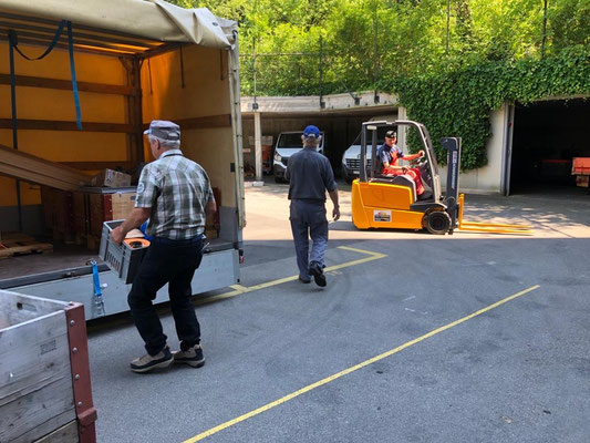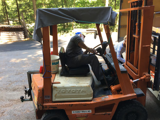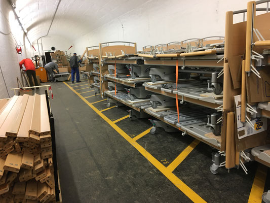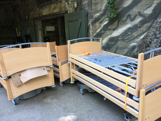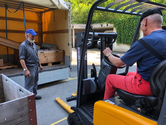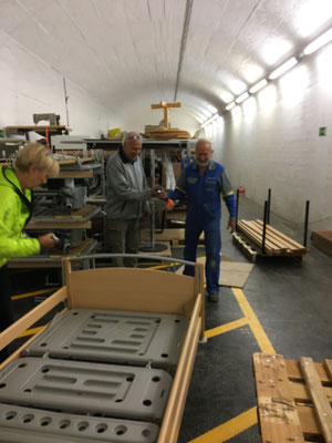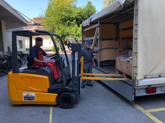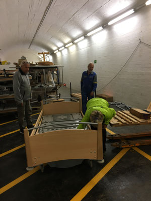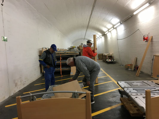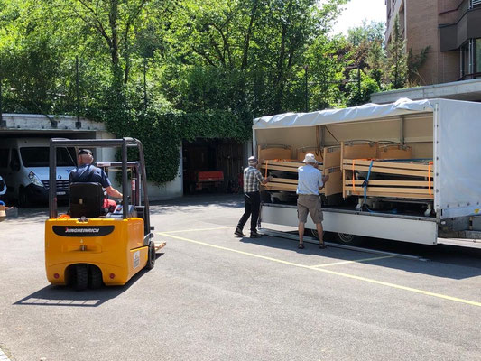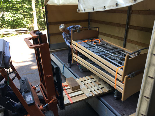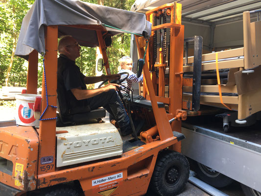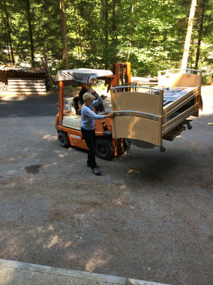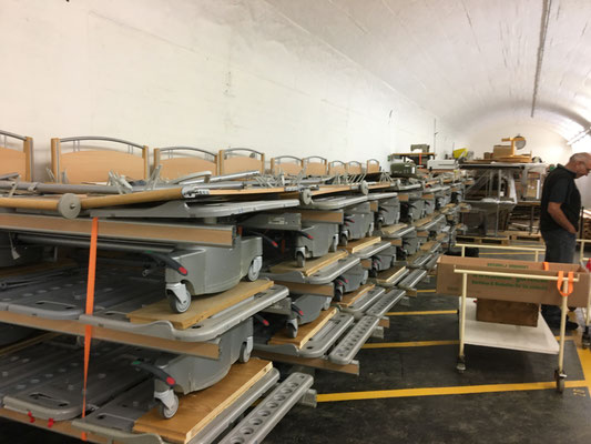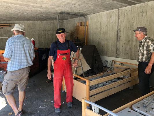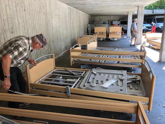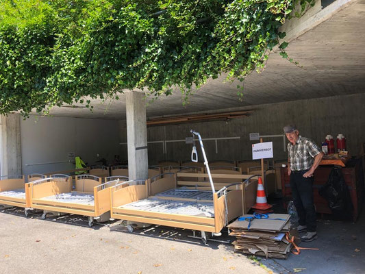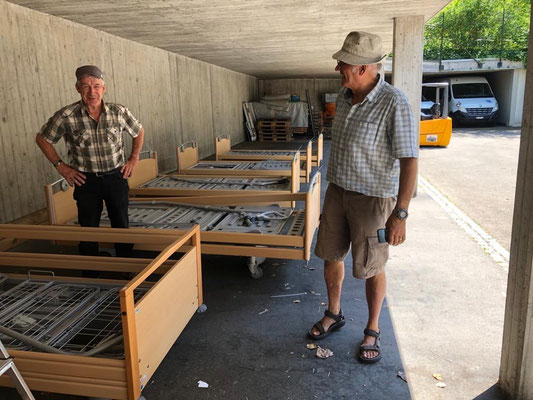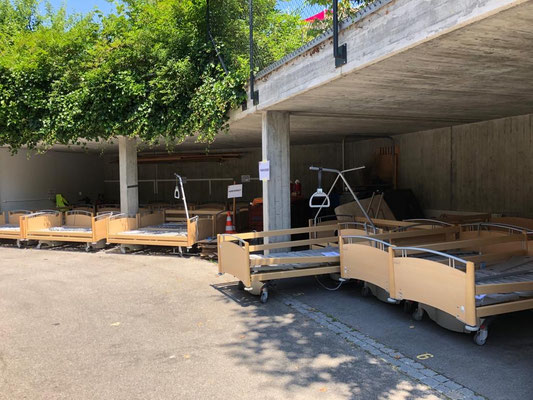 Am 24. und 25. Juni 2020 gingen unsere Arbeitstage jeweils um 10 Uhr bei der Solina in Steffisburg los. Die Firma Embru hat die neuen Betten bereits abgeladen, sodass das Personal der Solina gleich zu Beginn des Tages mit dem Austausch der Betten beginnen konnte. So konnten auch wir um 10 Uhr anfangen, die gebrauchten Betten transportgerecht zu stapeln und auf unsere Anhänger aufzuladen.