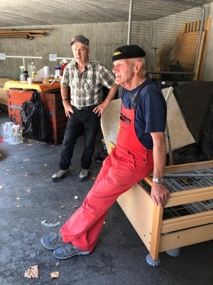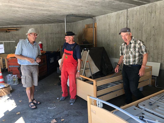 Nun darf sich Team Steffisburg (Gerda Siegenthaler, Res und Fritz Burren, Markus Stauffer und Res Käser) ein Päuschen gönnen. In der Zwischenzeit fahren Hans Haldemann und Werner Thöni die Betten in unser Lager.