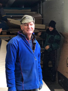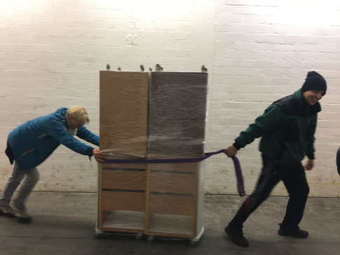 GESCHAFFT! Der LKW steht an der Rampe, unsere Helfer und unser Fahrer Nikolai sind zufrieden.