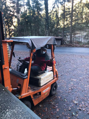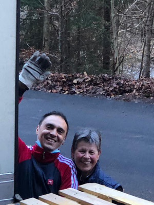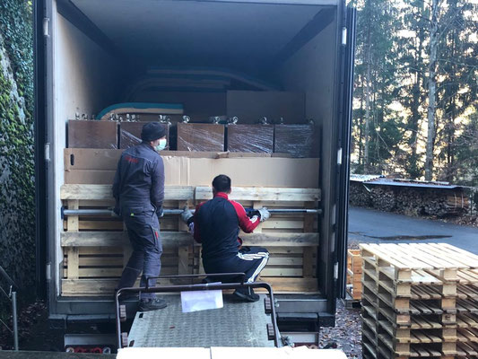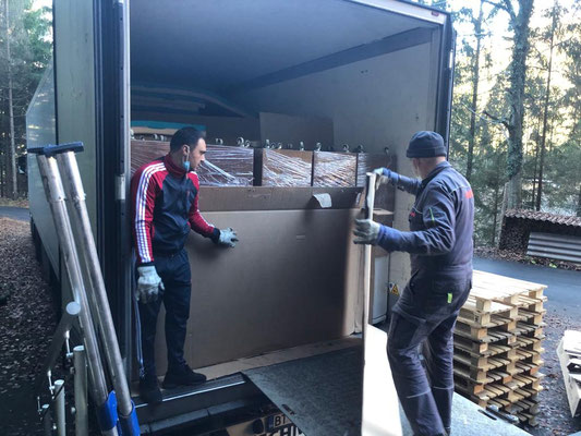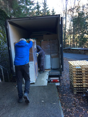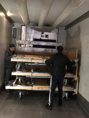 Da unsere Helfer Bernhard Bühler und Werner Thöni ebenfalls viel früher als vereinbart vor Ort waren entschlossen wir uns, dem 2. Helfer auf der LKW-Rampe, Hans Haldemann telefonisch abzusagen. Er war auch bereits auf dem Weg, kehrte dann aber nach unserem Anruf unverrichteter Dinge wieder nach Hause zurück.