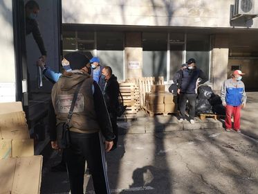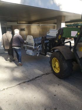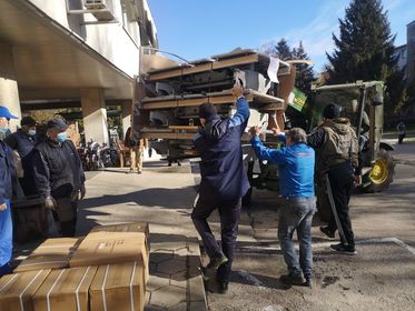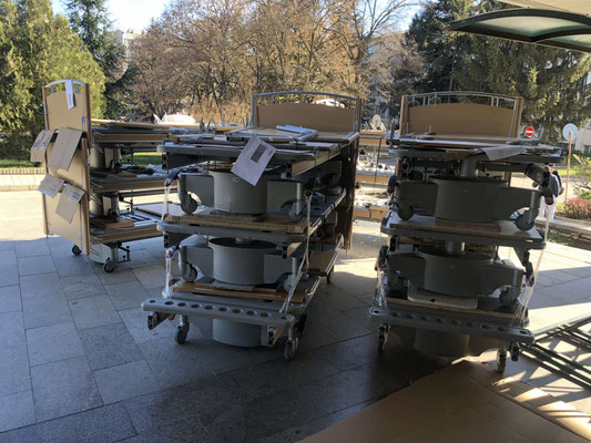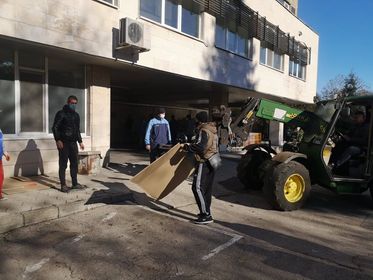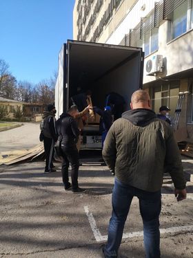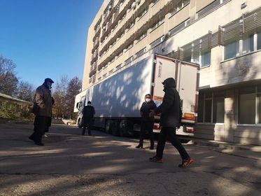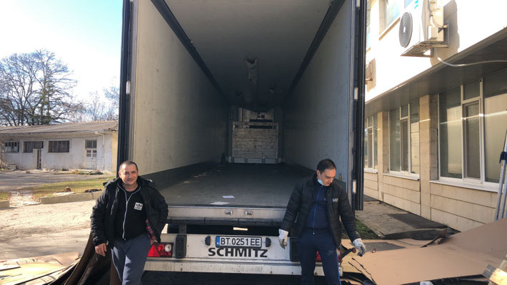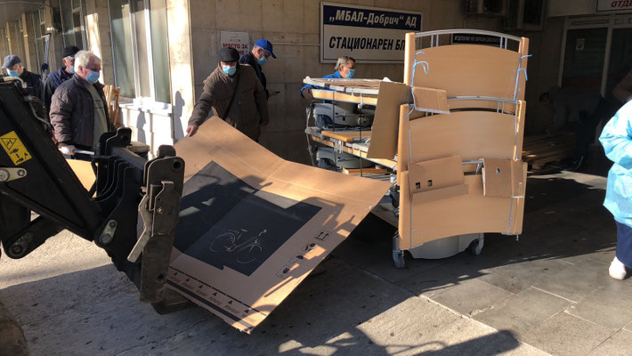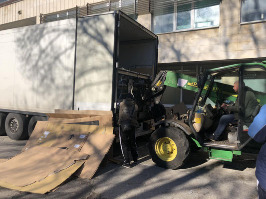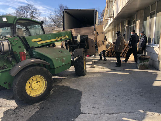 Nachdem unser Fahrer Nikolai ein erholsames Wochenende zu Hause bei seiner Familie verbringen konnte war er heute Montag morgen pünktlich am Zoll. Dank perfekter Vorbereitung in Bulgarien ging die Verzollung reibungslos und so konnte er unverzüglich weiter fahren zum Krankenhaus. Dort standen bereits 10 Personen mit Maschine zum abladen bereit.