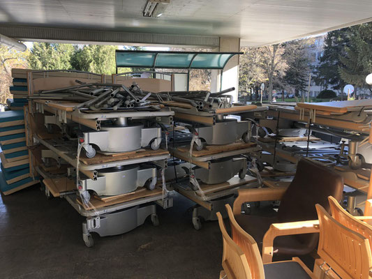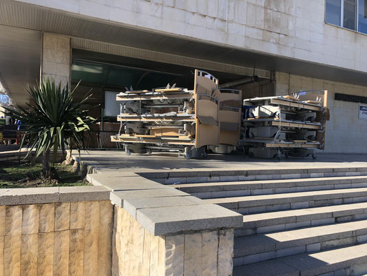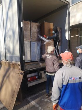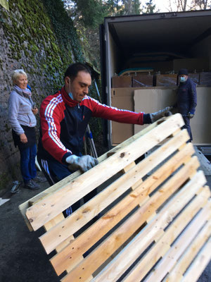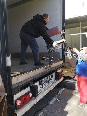 Was nun? Alle Helfer waren auf 13 Uhr bestellt mit der Aussicht auf ein feines "Znüni" ab 12 Uhr. Bis dahin waren aber noch mehr als 2 Stunden Zeit. Nachdem wir unter Mithilfe von Nikolai das Material von Rupperswil (siehe unter "News und Aktuelles") abgeladen und verstaut hatten und nach einen kleinen Znüni entschlossen wir uns dazu, das geplante Material für Dobrich langsam nach vorne zu räumen. Da Nikolai sehr "arbeitswütig" war kam unser Präsident Andres Thöni alleine mit den Fahrer unvorhergesehen schnell vorwärts.