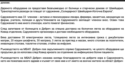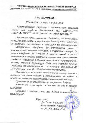 Wir bedanken uns bei allen Beteiligten in der Schweiz und in Bulgarien, dass dieses Projekt so schnell und reibungslos realisiert werden konnte.